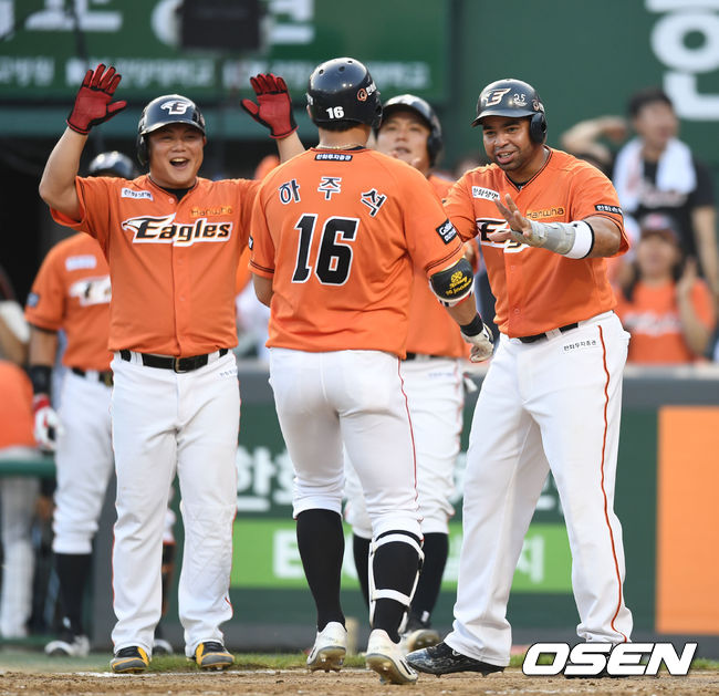 하주석이 만루포 포함 3안타 7타점, 양성우가 3안타 1볼넷으로 활약한 가운데 이용규·김경언·송광민·로사리오·허도환도 2안타씩 멀티히트를 쳤다. 선발타자 전원안타로 장단 19안타 대폭발. 선발투수 카스티요도 6이닝 5피안타 2볼넷 2사구 4탈삼진 2실점 퀄리티 스타트로 시즌 4승(2패)째를 수확했다.