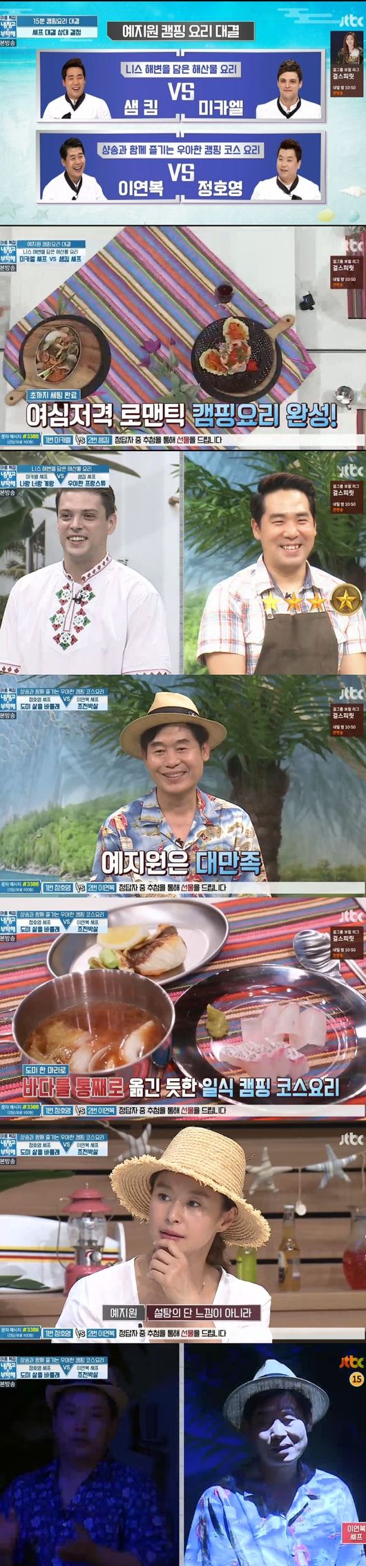 샘킴과 미카엘이 첫번째 주제로 대결을 펼쳤고, 샘킴은 프랑스식 스튜를 선보였다. 이날 예지원은 해산물을 좋아한다며 수산시장에서 싱상한 해산물을 잔뜩 사왔다. 샘킴은 도미, 조개 등을 이용한 해물 스튜를 요리했다. 미카엘은 새우, 게를 이용한 캠핑 요리를 선보였다. 해산물과 야채를 호일에 싸서 직화한 것.