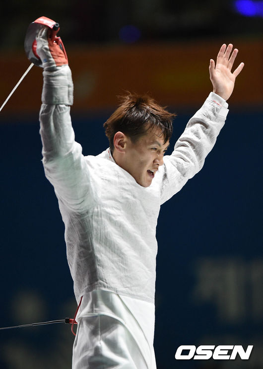구본길은 2회전 초반 9-7까지 추격을 허용했지만 내리 4점을 획득하며 13-7까지 격차를 벌렸다. 구본길은 14-9서 마지막 찌르기로 16강행을 확정지었다./sunday@osen.co.kr