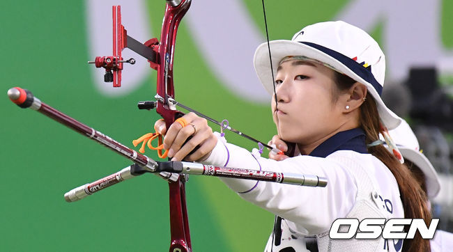 최미선은 1세트 3발을 28점을 쏘며 20점의 곤잘레스를 상대로 승점 2를 선점했다. 퍼펙트였다. 2세트를 27-23으로 이긴 최미선은 3세트를 28-25로 승리하며 32강행을 확정지었다./dolyng@osen.co.kr