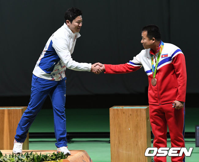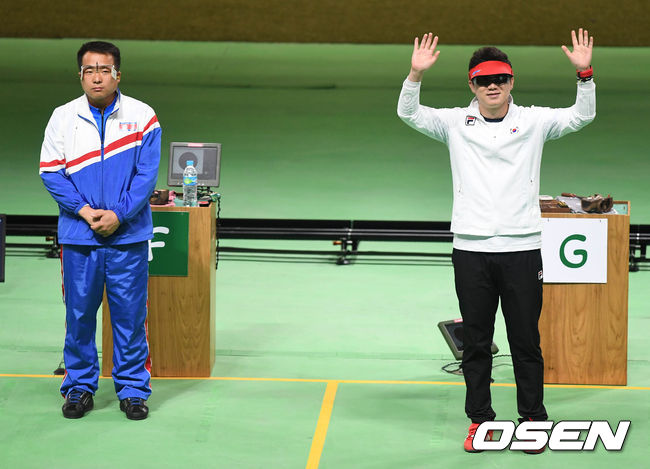 냉정시대 같았으면 서로 눈길조차 주지 않았을 상황에서 체조에 이어 사격에서도 남북의 화합은 이뤄졌다. 진종오의 기록과 함께 서로의 축하인사는 또다른 빛나는 기록이었다. / 10bird@osen.co.kr
