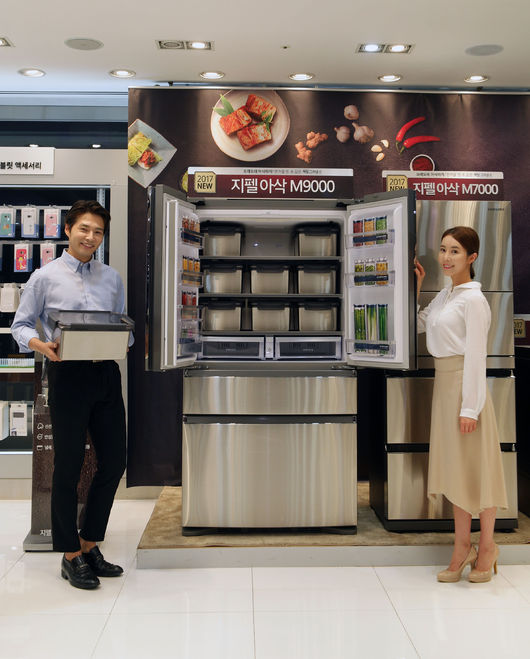 삼성전자가 25일 프리미엄 김치냉장고 2017년형 ‘지펠아삭 M9000’ 등 신제품을 출시했다.