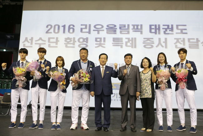 국기원(원장 오현득)이 2016년 브라질 리우데자네이루 올림픽(이하 리우올림픽)의 태권도 종목 메달리스트들에게 태권도 승단 심사의 연한을 단축할 수 있는 혜택이 담긴 증서(이하 증서)를 전달한다.