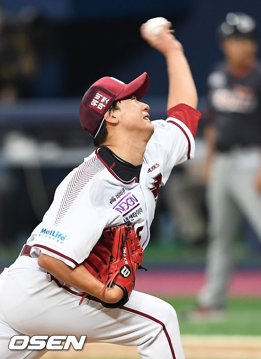 그런데 경기 상황이 묘하게 흘렀다. 선발 스캇 맥그레거가 기대대로 7⅓이닝으로 긴 이닝을 끌어줬지만 8회 4점차 리드에서 1사 1·2루 위기가 찾아왔다. 구원 마정길이 올라와 정근우를 뜬공 처리했지만 송광민에게 내야안타를 맞은 뒤 김태균에게 밀어내기 볼넷으로 실점했다. 3점차 만루 위기, 필승조 투입을 고려할 만한 했지만, 염경엽 감독 선택은 오주원이었다.