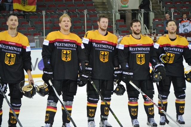 독일(10위)은 라트비아 리가에서 열린 E조 승자가 됐다. 1차전에서 일본(21위)을 5-0, 2차전에서 오스트리아(17위)를 6-0으로 가볍게 꺾은 독일은 라트비아(12위)와의 최종전에서 나란히 1골 1어시스트를 올린 NHL 플레이어 리온 드라이사이틀(에드먼턴 오일러스)과 톰 쿠나클(피츠버그 펭귄스)의 활약으로 3-2로 승리, 3전 전승(승점 9)으로 조 1위에 오르며 소치 올림픽 본선행 실패의 아픔을 씻어냈다.