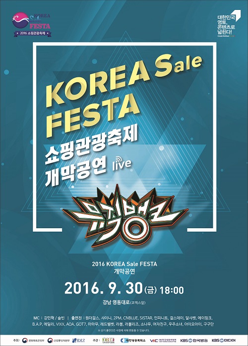 '생방송 뮤직뱅크-코리아세일페스타 특집'은 9월 30일(금) 오후 6시부터 KBS 2TV와 KBS월드채널을 통해 전 세계 120여 개국에 동시 생중계될 예정이다. / jsy901104@osen.co.kr