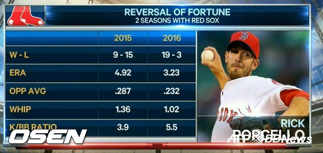 포셀로는 2009년 디트로이트에서 데뷔, 2014년까지 76승(63패)을 거뒀다. 2014년 거둔 15승이 개인 최다승이었다. 2014년 겨울 세스페데스와 맞트레이드로 보스턴으로 이적했다. 지난해 9승(15패)에 그쳤으나 올해 놀라운 반전을 일궈내고 있다.