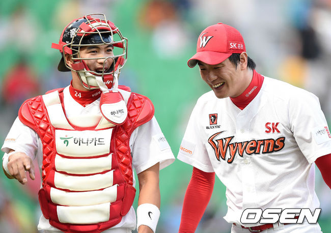 그러나 라라의 말은 다르다. 라라는 “체인지업을 던지고 싶은 타이밍에, 김민식이 딱 체인지업을 요구하더라”라고 웃었다. 경험이 쌓이고 있는 김민식이 좀 더 투수의 마음을 사로잡는 포수가 되고 있다는 하나의 상징적 사례다. 한 관계자는 “결과적으로 정상호를 잡지 않은 것이 세대교체 측면에서 도움이 됐다”라고 말한다. 김민식의 이런 활약이 없었다면 나올 수 없는 이야기다. /skullboy@osen.co.kr