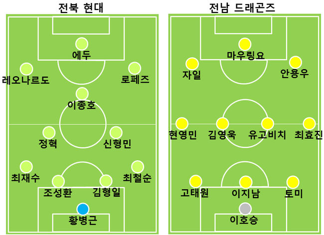 △ 득점 = 전37 레오나르도 후29 이동국(이상 전북 현대) 후32 유고비치 후36 한찬희(이상 전남 드래곤즈)
