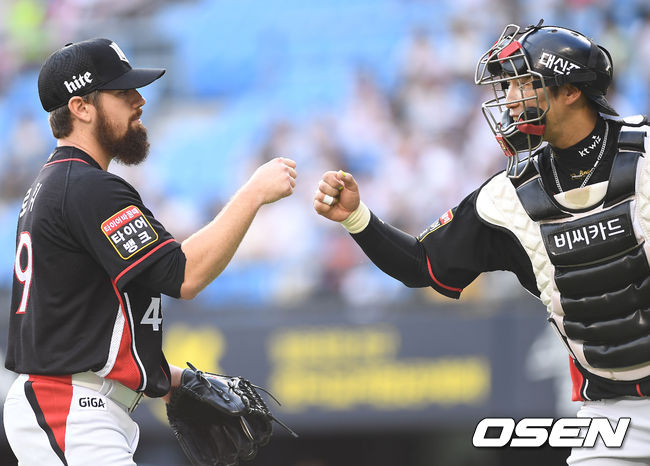 로위는 7이닝 동안 95개의 공을 던지고 홍성용으로 교체됐다. 기대 이상의 호투였다. 최고 구속 148km의 패스트볼(47개)에 커브(20개), 포크볼(18개), 체인지업(8개), 투심 패스트볼(2개)를 던졌다. 스트라이크 비율도 63%로 좋았다. kt는 로위에 이어 불펜진의 호투로 리드를 지키고 연패를 끊었다. /krsumin@osen.co.kr