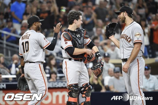 이로써 샌프란시스코는 82승73패를 기록, 이날 필라델피아에 8-10으로 패한 뉴욕 메츠(82승73패)와 와일드카드 공동 1위가 됐다. 한 경기 덜 치른 세인트루이스(81승73패)가 0.5경기 차이로 바짝 뒤쫓고 있다.