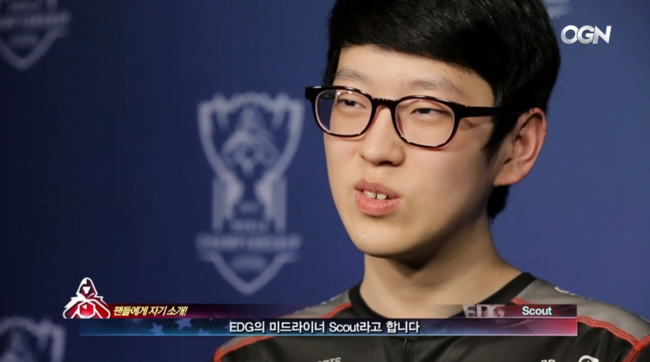 EDG 미드 라이너 '스카웃' 이예찬이 3일(한국시간) 오전 미국 샌프란시스코 '빌 그레이엄 시빅 오디토리움'에서 열린 '2016 LoL 월드 챔피언십(이하 롤드컵)' 조별예선 H2K와 경기서 생애 첫 롤드컵 무대를 밟았다.