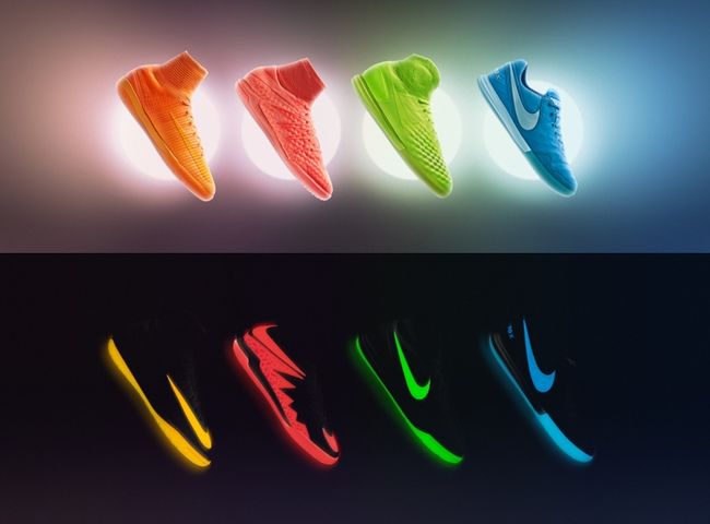 나이키는 강렬한 색상으로 가시성을 극대화한 미니 축구용 축구화 나이키 플러드라이트 글로우 팩(Nike Floodlights Glow Pack)을 출시한다.