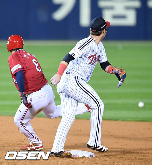 오지환은 8회 우익선상 2루타를 터뜨리며 추격의 발판을 마련했지만 실책 여파는 가시지 않았다. LG는 KIA에 2-4로 패하며 벼랑 끝 위기에 내몰렸다. 채은성과 오지환의 부진이 더욱 아쉬웠다. /what@osen.co.kr