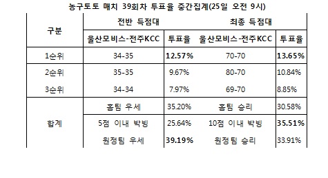KBL 울산모비스-전주KCC전 대상 농구토토 매치 39회차 투표율 중간집계 결과