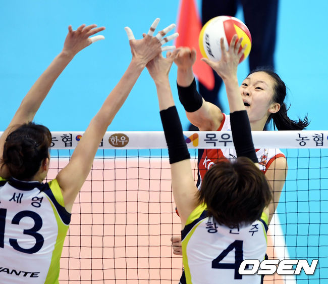 경기 3세트 인삼공사 지민경이 공격을 시도하고 있다. / eastsea@osen.co.kr
