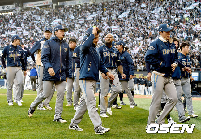 NC는 한국시리즈 2경기에서 단 1점 밖에 뽑지 못했다. 2경기에서 타율 2할(65타수 13안타)에 머물렀다. 2루타 이상의 장타도 없이 모두 단타에 그쳤다. 두산 니퍼트와 장원준의 구위와 제구에 NC 타선은 할 수 있는 것이 많지 않았다.