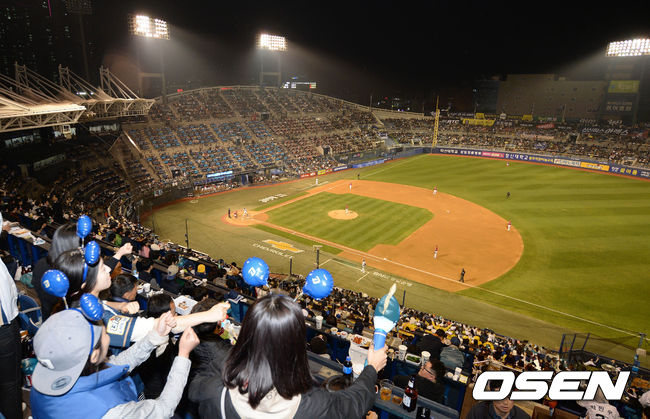 이로써 이번 포스트시즌에선 LG 트윈스와 NC 다이노스의 플레이오프 1차전부터 7경기 연속 매진이다. 한국시리즈로는 지난해 10월26일 두산 베어스와 삼성 라이온즈의 1차전부터 8경기 연속 만원관중 기록이다. /waw@osen.co.kr