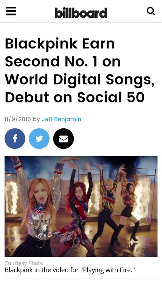 최근 빌보드는 “데뷔부터 각종 음원차트를 맹폭격한 신인 그룹 ‘블랙핑크’가 컴백하자마자 1위 자리를 탈환, 빌보드 차트를 점령했다”라고 블랙핑크의 놀라운 성적을 조명했다.