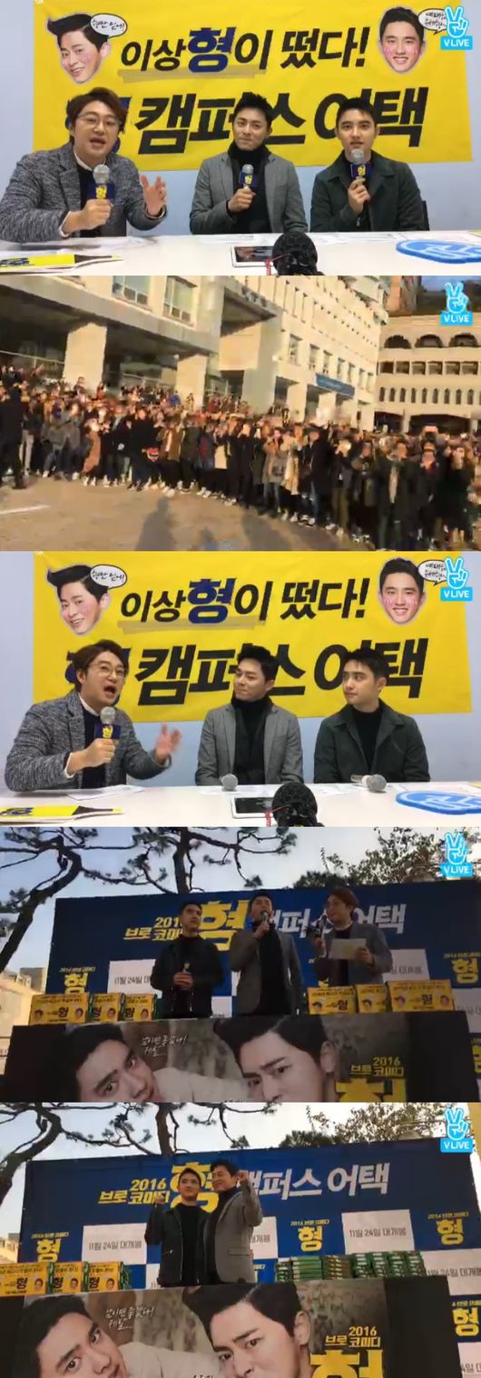 11일 오후 포털사이트 네이버 V앱을 통해 '조정석X도경수 캠퍼스 어택'이 생중계 됐다. 이날 생중계에는 조정석과 도경수가 출연했다.