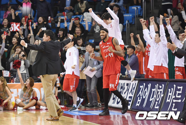 극적으로 승리를 거둔 SK 문경은 감독이 기뻐하고 있다. / youngrae@osen.co.kr