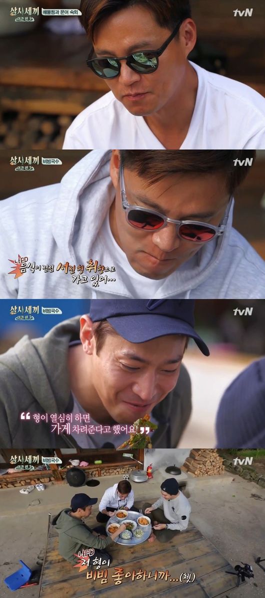 이를 본 나PD는 "점점 음식들이 서진이 형의 취향으로 가고 있다"며 "가을에는 국물 있는 걸 먹지 않나. 서진이 형이 비빔을 좋아하니까"라고 불평을 토로했다.