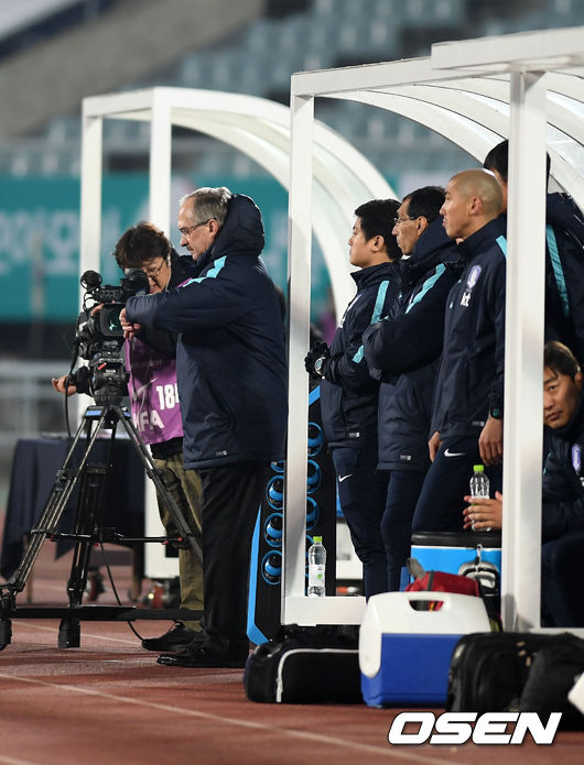 경기 종료를 앞두고 한국 슈틸리케 감독이 시계를 바라보고 있다. /jpnews@osen.co.kr