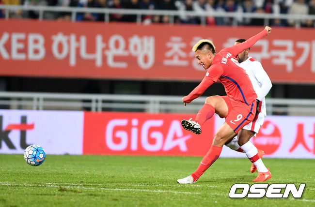 후반 한국 김신욱이 슛을 시도하고 있다. /jpnews@osen.co.kr