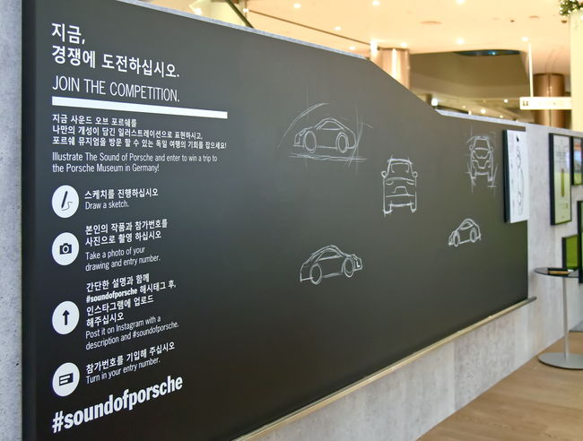 마지막으로 포르쉐는 관람자가 직접 사운드 오브 포르쉐 테마에 대한 그림을 그리며 브랜드와 소통할 수 있는 디자인 코너도 마련했다. 이벤트 응모는 디자인 코너의 그리기 대회에 참가해 직접 디자인한 그림을 사진으로 찍어 #soundofporsche 해시태그와 함께 SNS에 게시하면 된다. 1등 당첨자에게는 독일 포르쉐 박물관 입장권 및 항공권(2인)이 제공된다.