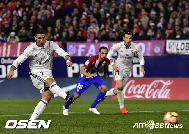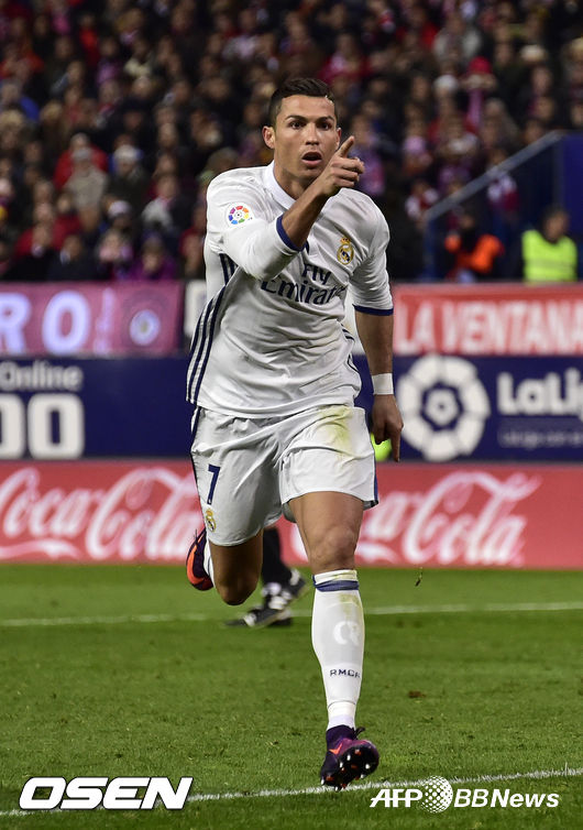 한꺼번에 세 골을 보탠 호날두는 시즌 8골로 리오넬 메시, 루이스 수아레스와 단숨에 득점 선두로 올라섰다. 호날두는 ‘마드리드 더비’에서만 무려 9골을 쏟아내며 최다득점기록을 이어갔다. / jasonseo34@osen.co.kr