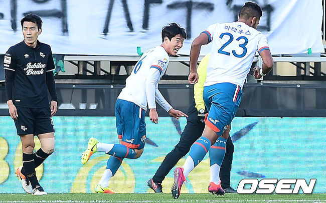 한석종은 가장 중요한 경기서 시즌 2호골을 작렬했다. 무엇과도 바꿀 수 없는 값진 골이었다. 그는 “공이 들어가는 걸 보지도 못했다. 공간이 있어 파고들어갔다. (허)범산이 형이 패스를 잘 넣어줘서 좋은 찬스서 넣었다. 이겼으면 더 좋았을 것이다. 그래도 승격해서 기분이 좋다”며 활짝 웃었다. / jasonseo34@osen.co.kr