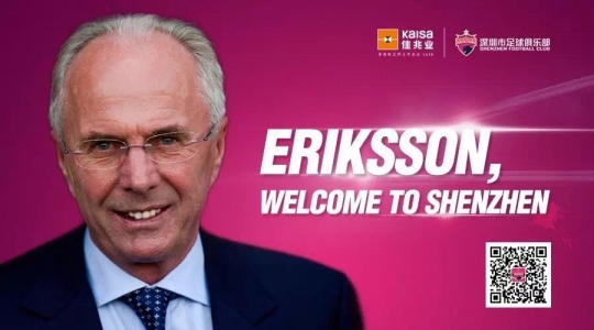 선전은 5일 구단 공식 웨이보를 통해 지난달 슈퍼리그(1부리그) 상하이 상강 감독을 지냈던 에릭손 감독을 새 감독으로 선임했다고 밝혔다.