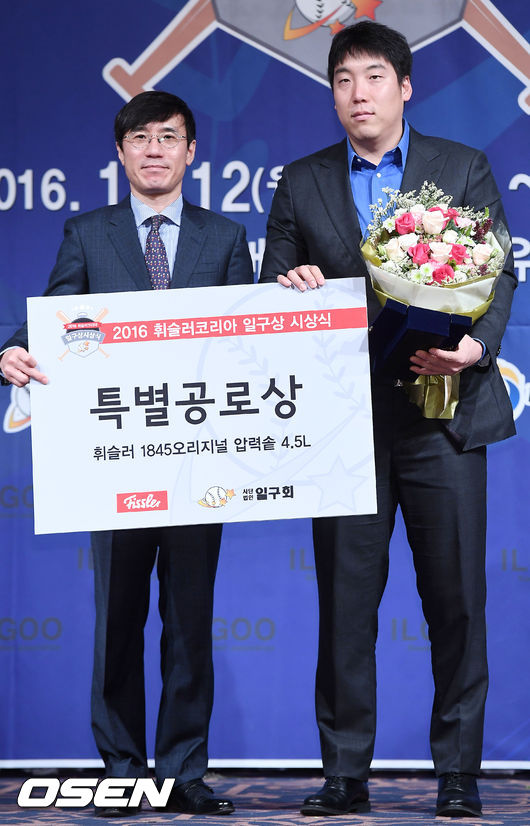 특별공로상은 지난 시즌 메이저리거로 성공적인 시즌을 보낸 김현수에게 돌아갔다. 김현수는 지난 시즌 메이저리그 95경기에서 출장해 타율 3할2리. 6홈런. 22타점. 36득점을 기록했다. 특히 김현수는 출루율 3할8푼2리를 기록해 팀의 ‘출루율 갈증’을 해소했다.