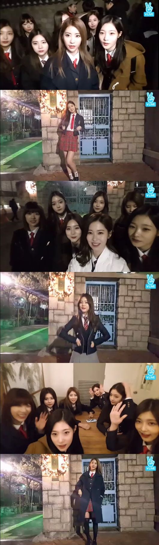 이날 다이아 멤버들은 교복을 입고 등장했다. 정채연이 드라마 촬영하고 있는 현장을 생중계했다. 돌담길 곁에서 정채연은 추운 날씨에도 열심히 야외 촬영을 하고 있었다.