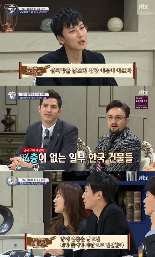 이날 김남길은 ‘우리나라의 금기사항’에 대해 말하던 중 “우리나라 건물에는 4층이 없다”며 “흥미로운 사실은 인천공항에도 4번 게이트와 13번, 44번 게이트가 없다. 불길하다고 여겨서 그런건지 신기하다”고 말했다.