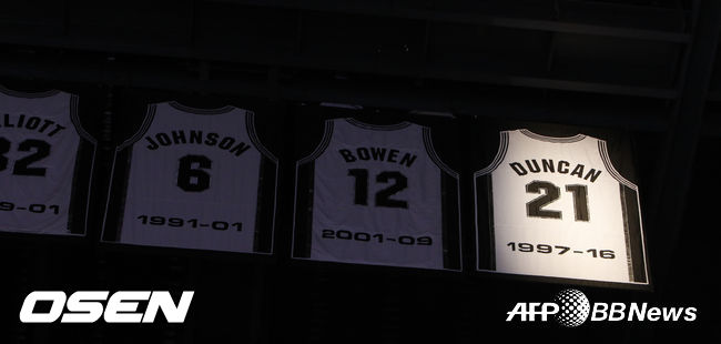영구결번식에서 덩컨은 “난 오늘 많은 내기에서 이겼다. 청바지를 입고 오지 않았고, 스포츠 코트를 입었다. 오늘 30초 이상 발언할 것이다. 샌안토니오 팬들에게 정말 감사한다”며 위트 있는 소감을 전했다. 꾸준함의 대명사인 덩컨은 19시즌 동안 샌안토니오에서만 뛰며 19점, 10.8리바운드, 3어시스트, 2.2블록슛을 기록했다.