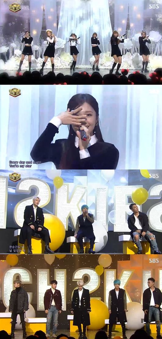 한편, 이밖에도 새해 첫 날 '인기가요'에서는 세븐틴의 '붐붐', 업텐션의 '햐얗게 불태웠어', 라붐의 '겨울동화' 등의 무대가 꾸며졌다. 또한 비트윈, 슈퍼키드, 펜타곤, 빅톤, 스누퍼, 베이비부, 보이스퍼, 보너스베이비, 하이솔, 일급비밀 등이 출연했다. / gato@osen.co.kr