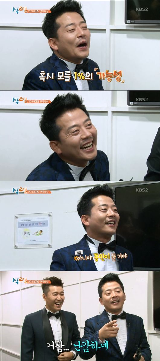 1일 오후 방송된 KBS2 예능 프로그램 ‘1박2일’에서는 지난해 12월 24일 방송된 ‘2016 KBS 연예대상’ 에피소드가 그려졌다.