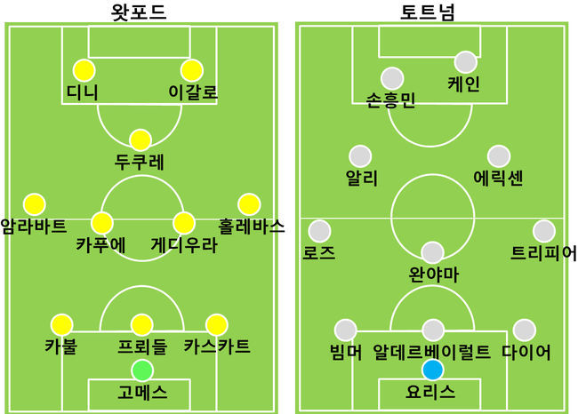 토트넘은 왓포드를 상대로 깜짝 스리백 카드를 꺼냈다. 그러나 수비적이지 않았다. 전력에서 앞서는 토트넘은 스리백을 쓰면서도 윙백의 적극적인 공격 가담으로 많은 기회를 만들었다. 전반 27분에는 델레 알리가 골대를 때리기도 했다.