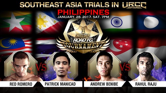 필리핀 단체 URCC에서 진행할 100만불 토너먼트 동남아시아 지역 예선에 총 4명의 파이터들이 출전한다. 레드 로메로와 패트릭 마니카드가 맞붙고, 앤드류 베니베와 라훌 라주가 대결한다. 이들 중 단 한명만이 ROAD FC 100만불 토너먼트 16강 본선에 진출하게 된다.