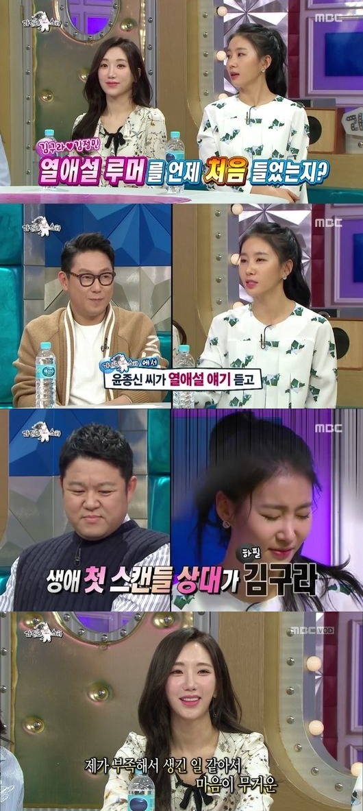 이날 가장 눈길을 끈 출연자는 김정민과 예정화. 이들은 김구라와 김정민의 열애설에 이름이 오르내린 주인공이다. 김정민은 열애설 당사자로, 예정화는 이들의 열애설을 방송에 언급한 인물이었던 것.
