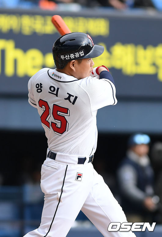 0-2로 지고 있던 4회말 1사 1루 상황에서 타석에 들어선 양의지는 오간도의 149km/h 직구를 그대로 받아쳐 좌측 담장을 넘겼다. 양의지의 시즌 1호 홈런.
