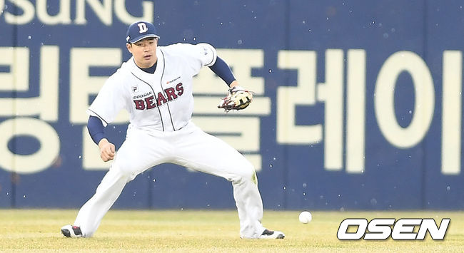 김태균은 유희관의 공을 받아쳐 좌익수 방향으로 날렸다. 다소 짧은 타구에 김재환은 몸을 날려 공을 잡았다. 일어나는 과정에 공이 빠졌지만, 심판은 아웃을 선언했다.