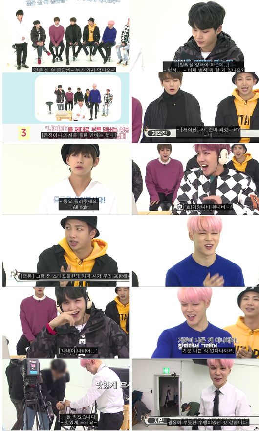 주제가 정해졌고 벌칙을 정해야 한다는 말에 제이홉은 "벌칙을 할 게 있나요? 벌칙을 너무 많이해서"라고 말했다. 뷔는 "여기 있는 분들에게 커피 돌리기"라고 제안했다. 멤버들은 "본인 카드로 해야한다"고 했다.