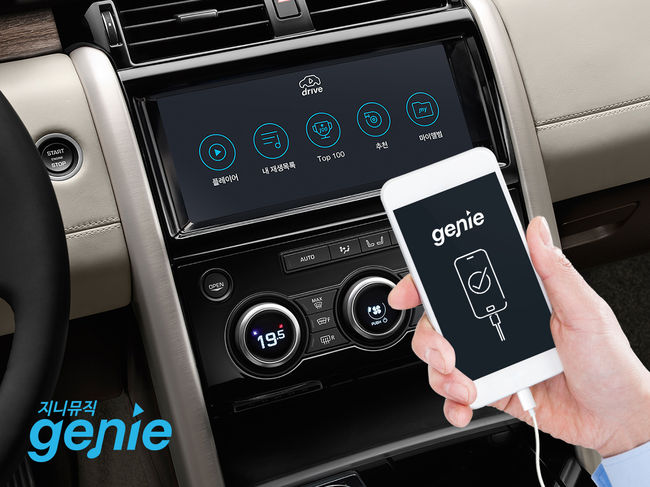 지니 유료가입자는 ‘재규어 랜드로버 지니’를 통해 전곡듣기가 가능하다. 운전자의 스마트폰에 ‘재규어 랜드로버 인컨트롤’ 애플리케이션과 지니 앱을 설치한 후, 차량 USB 케이블을 연결하면 차량 전면부 터치스크린에서 ‘재규어 랜드로버 지니’가 실행된다.