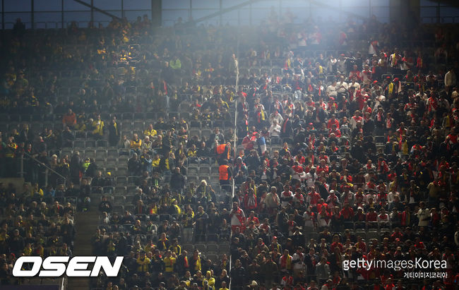 [사진] 경기 직전 폭발 사고 소식을 전해들은 도르트문트-모나코전 관중들. ⓒGettyimages(무단전재 및 재배포 금지)