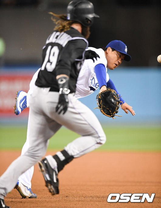 다시 1번 타순부터 맞이한 류현진. 선두타자인 찰리 블랙몬에 투수와 1루수 사이로 흐르는 애매한 타구를 허용했다. 그러나 류현진은 집중력을 발휘해 타구를 끝까지 쫓아갔고 글러브 토스를 통해 블랙몬을 잡아냈다. 1루수 애드리언 곤잘레스와 호흡이 맞지는 않았지만 류현진의 집중력과 곤잘레스의 순발력이 조화를 이루며 첫 아웃카운트를 잡아냈다.