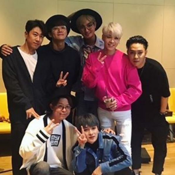 공개된 사진 속 젝스키스 멤버 은지원, 강성훈, 이재진, 김재덕, 장수원은 H.O.T. 출신의 강타, 토니안과 함께 브이(V)자를 그리며 인증샷을 남기고 있다.