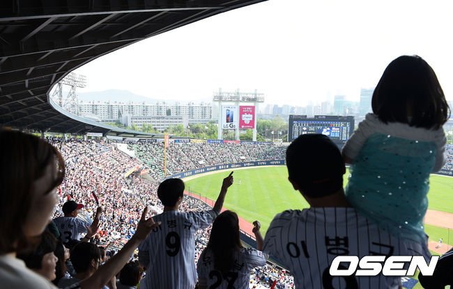 LG가 두산과 21번째 어린이날 매치에서 승자가 됐다. 5일 LG-두산이 맞붙은 잠실구장은 10년 연속 어린이날 매진을 기록했다. '엘린이'가 '두린이' 앞에서 승리 찬가를 불렀다.