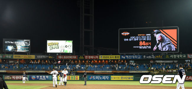 이제 김태균은 2일 대전 SK전에서 한·미·일 최다 연속 85경기 연속 출루에 도전한다. 세계 기록으로 범위를 넓히면 대만프로야구에서 린즈성이 2015~2016년 1년에 가까이 109경기 연속 출루한 바 있다. /waw@osen.co.kr